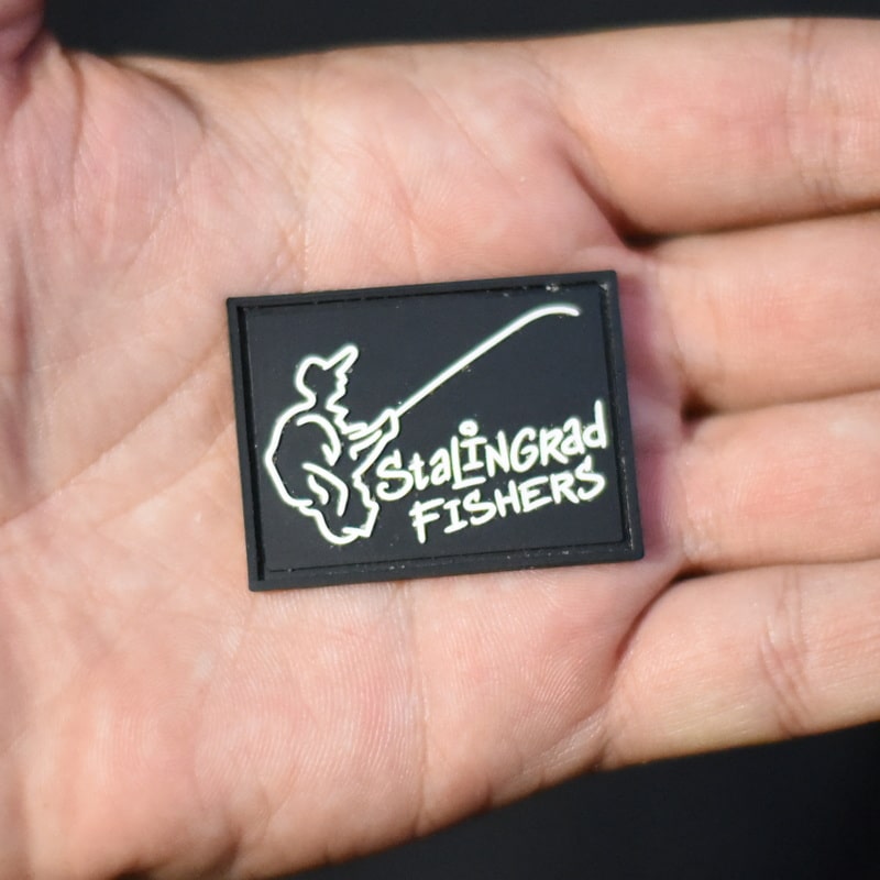 Резиновая бирка размером 3 на 4 сантиметра, которую можно нашить практически куда угодно. Углубление для шва имеется.