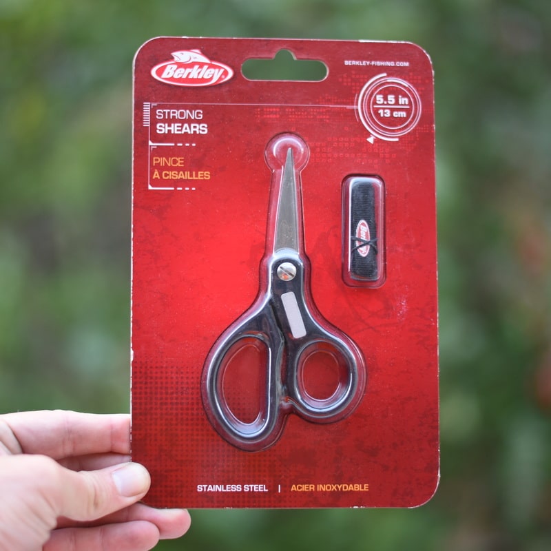 Для работы с плетеными шнурами пригодятся ножницы Berkley Leader Shears Fishingear. Эта модель ножниц продумана специально для удобства их применения на рыбалке. Во-первых, на рукоятке находится небольшая поверхность для заточки крючков. Во-вторых, они дополнены страховочным шнурком, который можно закрепить на запястье, ремне или жилете и сберечь инструмент от потери. Еще одно немаловажное преимущество – малый вес. Они совсем не утяжелят экипировку рыбака.
