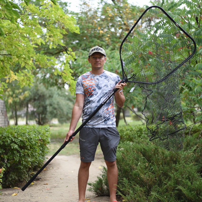 Карбоновый подсак, состоящий из двух выдвижных колен. Голова складная. На ручке имеется линейка для замера рыбы. Длина в разобранном виде 2,40 метра. Сетка выполнена из прорезиненного нейлона, предотвращающая травмирование рыбы, отлично подойдет для ловли с лодки. Поставляется в фирменном чехле.