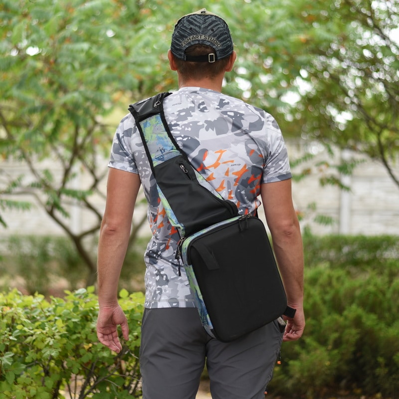 Стильный нагрудная сумка при коллаборации Relax и Fish Art Studio. Можно носить как на спине, так и на груди. Два больших кармана со встроенными коробками на липучках, которые не выпадут из сумки под любым углом.