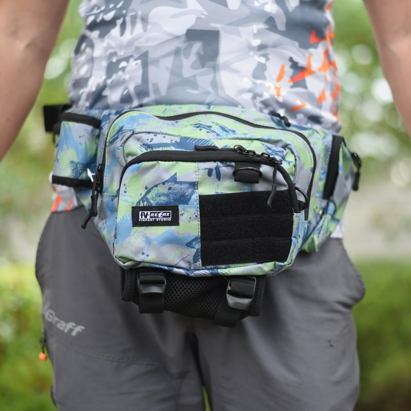 Стильная поясная сумка при коллаборации Relax и Fish Art Studio. Несколько отсеков и карманов на молнии, станка-держатель для спиннинга, полукарман для хранения ёмкости с жидкостью, карман для пассатижей. Регулируемый пояс с полуавтоматической застёжкой фастекс.