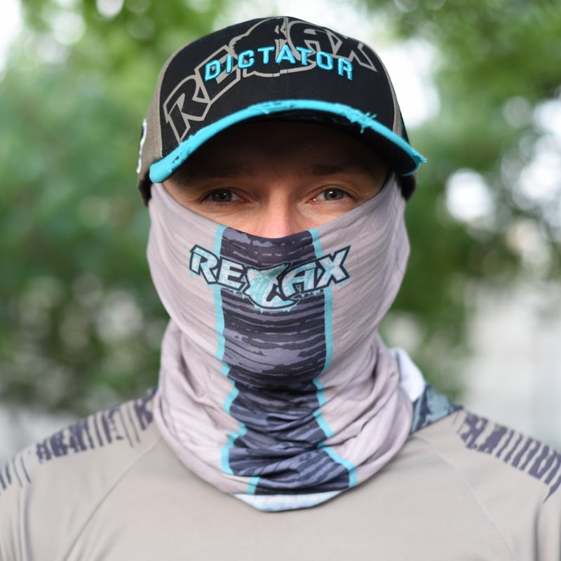 Фирменый бафф от компании Relax для любителей спиннинга Dictator. Защитит от ярких солнечных лучей, в частности, отлично бережёт нос, но также его можно использовать в холодную погоду в виде шарфа. Вариантов его ношения на голове более десятка.