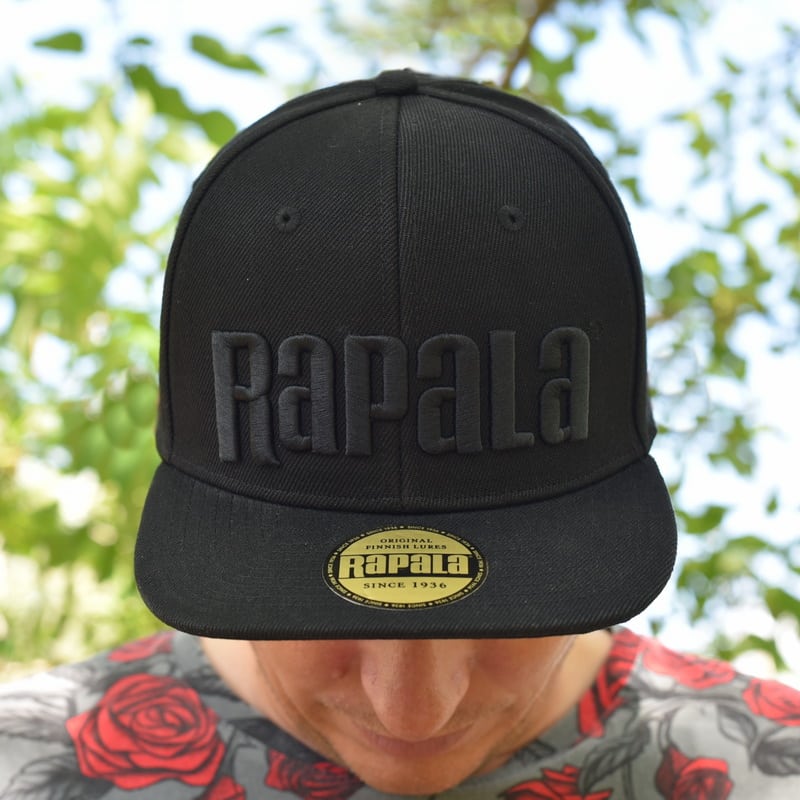 Чёрный снэпбэк от компании Rapala. Название головного убора происходит от пластикового ремешка-застежки на тыльной стороне. Бейсболка с прямым козырьком также имеет практическое преимущество, а именно — внутреннюю окантовку, предназначенную для того, чтобы капли пота не попадали на лоб.