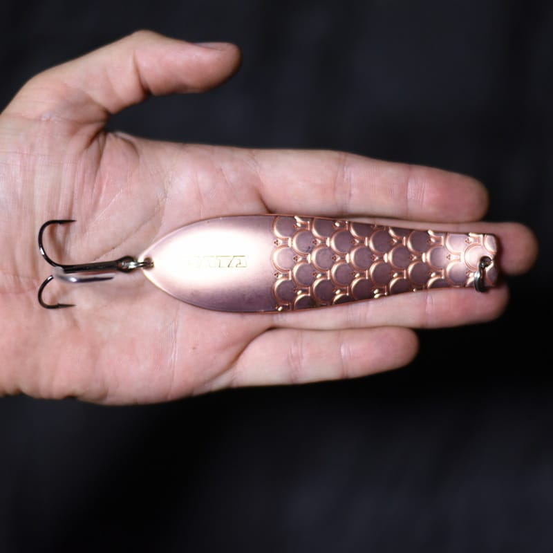 Блесна от компании Олта из Кемерово в матовом покрытии. Три варианта цвета на тройниках Mustad. Игра блесны напоминает движения раненой рыбки, на остановках проводки она медленно и размашисто планирует. При бесклевье попробуйте поменять местами заводное кольцо и тройник – игра блесны и заглубление изменятся. Можно ловить как равномеркой, так и джиговой ступенькой по дну. Выполнена из цветного металла, благодаря чему не подвержена коррозии и обладает более лёгкой игрой.
