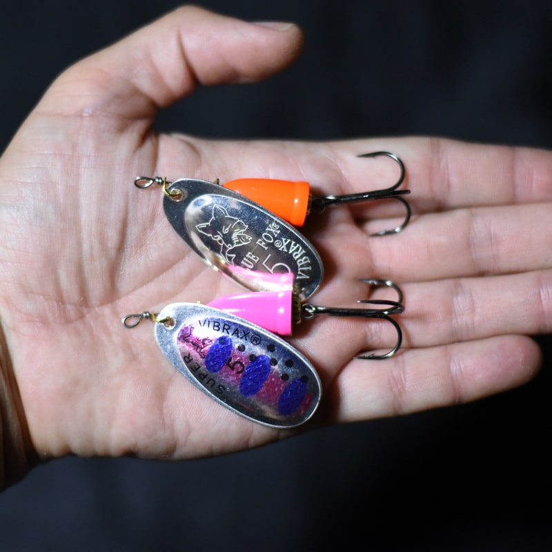 Блесна №1 для ловли на Камчатке. Излюбленная приманка таких рыб как кижуч, кета, сёмга и прочих лосоевых рыб. Блёсны с розовым и оранжевым колокольчиками – бестселлеры. Данная блесна отличается от других своей агрессивной раскраской, и больше других подходит для ловли различных лососевых рыб. Состоит приманка из двух частей: лепестка и специальной погремушки. Изготавливается из нержавеющих элементов, специальной стали и латуни.