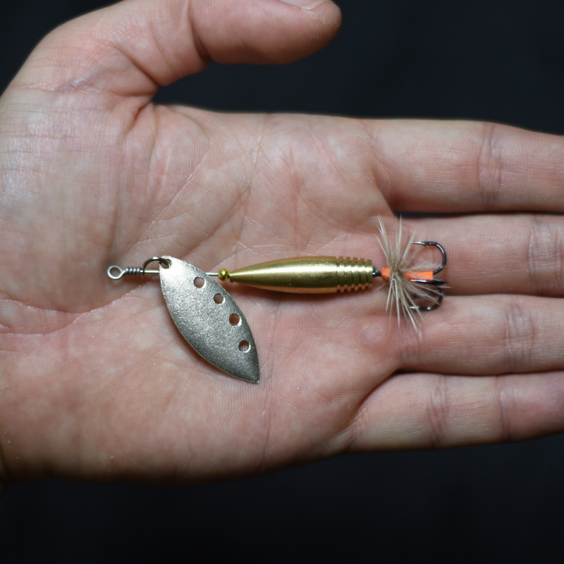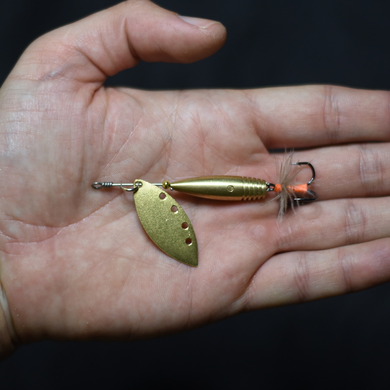 Единственная на моей памяти точная имитация легендарной блесны-вертушки Маньячка. Ручная работа мастера из Луганска. Отлично заводится, прекрасно летит и хорошо ловит. Самая тяжёлая модель в линейке, которая подойдёт для ловли жереха, голавля и окуня. Цвета опушения разнятся.