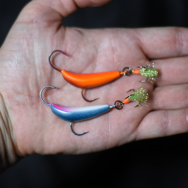 Уникальная зимняя блесна преимущественно для ловли судака в отвес. Содержит в себе два основных крючка и дополнительный тройник в заводном кольце для крепления. Покрытие блёсен светится под ультрафиолетом. У наиболее тяжёлых моделей стоит тройник со светонакопительным опушением.
