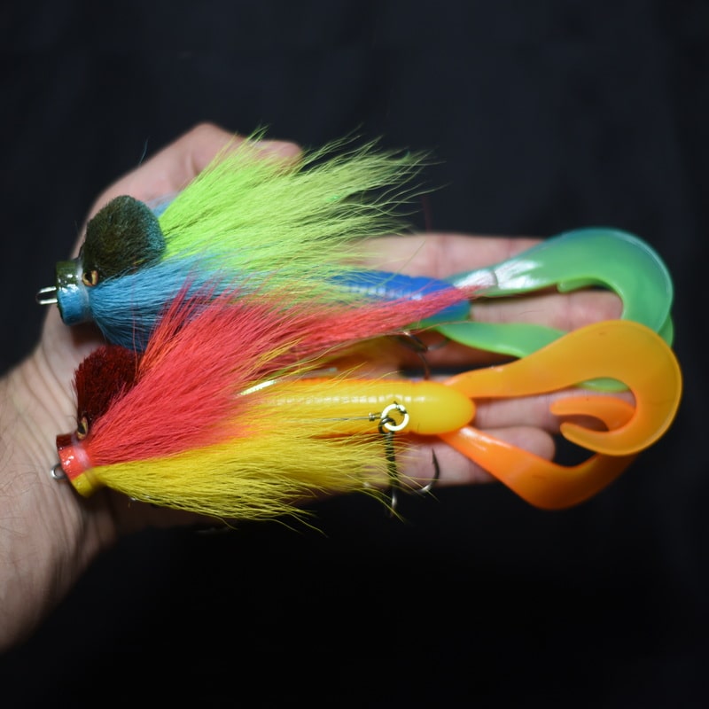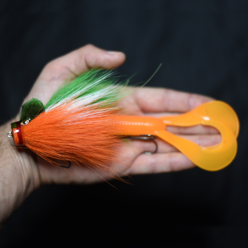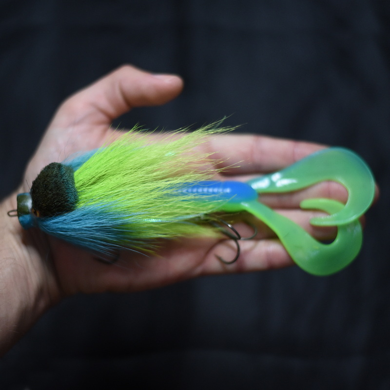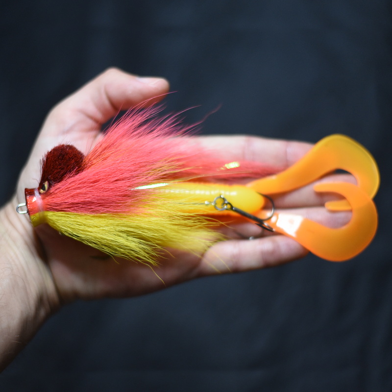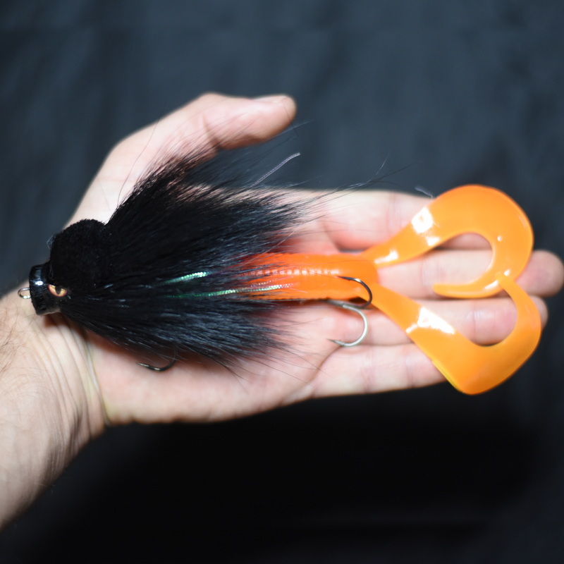 Это приманка-бактейл ручной работы Максима Ковязина из Кирова, предназначенная для ловли щуки и тайменя. При изготовлении опушения мыши используется натуральный мех оленя. Приманка массой 37 грамм, медленно тонущая. Тройники фирмы BBK.