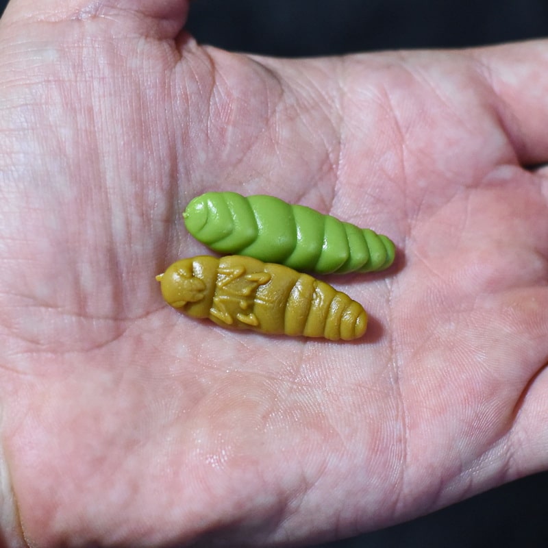 Приманка, изначально предназначавшаяся для спортивной ловли форели. Как оказалось на деле, эти личинки просто сумасшедшим образом ловят такого белого хищника, как голавль, язь и жерех. Прекрасные результаты эта приманка показала при ловле карася, леща и прочих мирных рыб при помощи микроджига. Отлично ловит морскую рыбу – скорпена, зеленушка, ставрида, морской карась. И всё это благодаря уникальному составу материала, сильнейшего аттрактанта и уникальнейших форм. Считаю, что эти личинки могут совершить революцию в спиннинговой ловле.