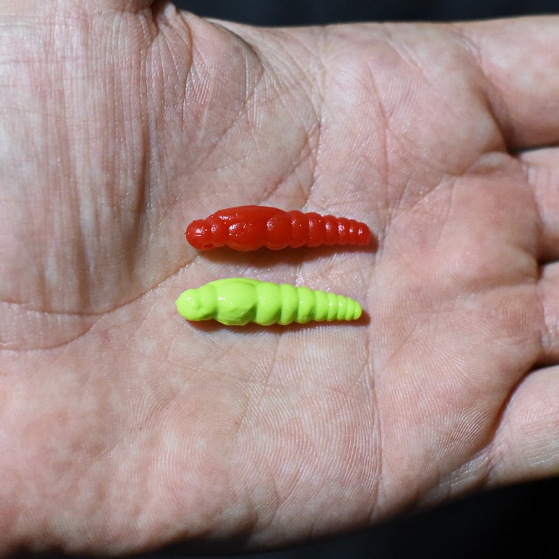 Приманка, изначально предназначавшаяся для спортивной ловли форели. Как оказалось на деле, эти личинки просто сумасшедшим образом ловят такого белого хищника, как голавль, язь и жерех. Прекрасные результаты эта приманка показала при ловле карася, леща и прочих мирных рыб при помощи микроджига. И всё это благодаря уникальному составу материала, сильнейшего аттрактанта и уникальнейших форм. Считаю, что эти личинки могут совершить революцию в спиннинговой ловле.