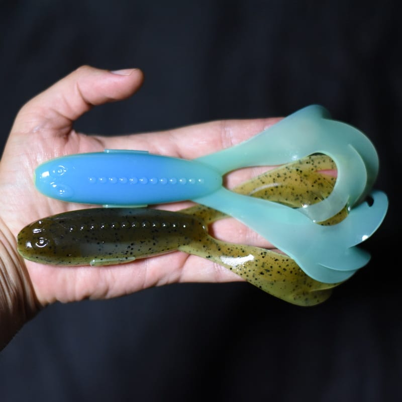 Крупный, максимально адаптированный под наши условия ловли двухвостый твистер. Double Croak 7.9” — старшая модель, весом в полсотни грамм уже предъявляет более жесткие требования к мощности снасти. И рассчитана на серьезный трофей — прежде всего, крупную щуку.