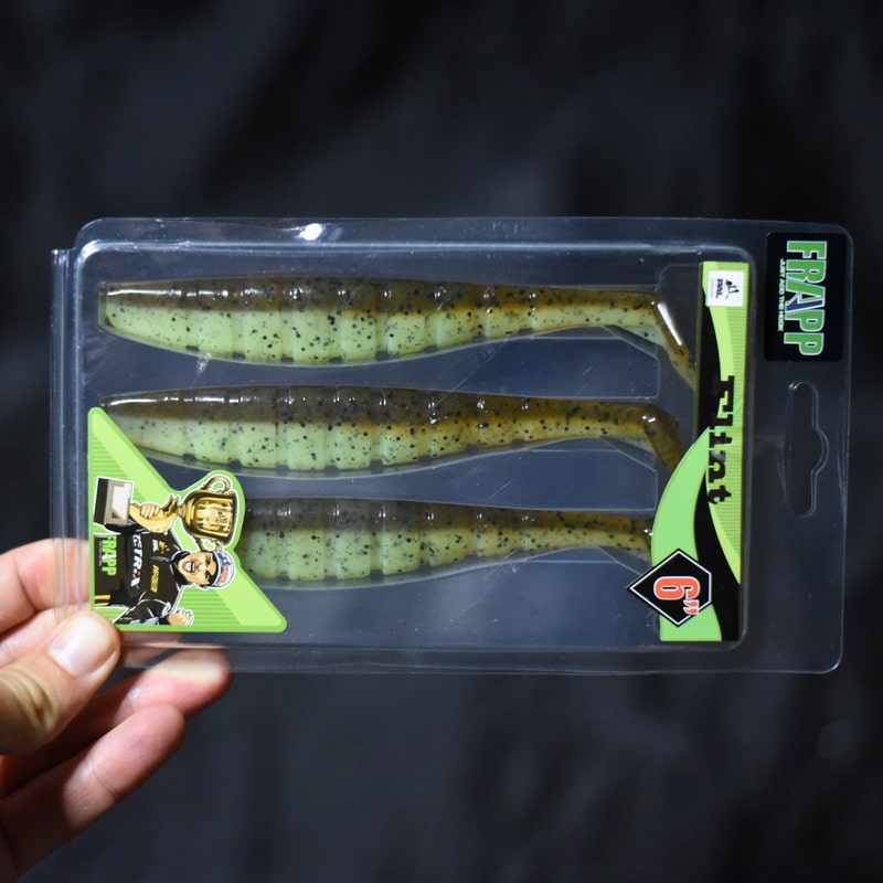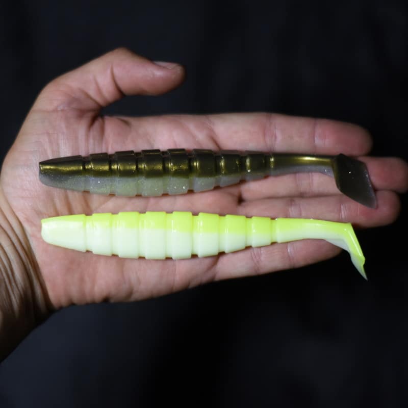 Универсальная модель средне-крупных размеров с достаточно объемным сегментированным телом формы в стиле “шед” и оригинальной рубленой пяткой в форме вытянутого сверху вниз пятиугольника. Разрабатывалась в первую очередь для ловли хищника в водоемах с течением и допускает самые разные приемы анимации: от классической джиговой ступеньки до равномерной проводки. Оснащать разумнее всего джиг-головкой с крючком 4/0-6/0 с применением стингеров. Для судака размер джиг-головки следует подбирать поменьше, т.к. он, как правило бьёт в голову, для щуки – побольше.