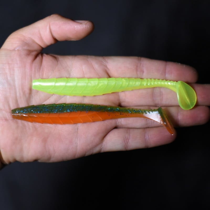 Это виброхвост средних пропорций с характерной «чешуйчатой» поверхностью. Пятка имеет округлую, каплеобразную форму. При проводке у Geko выраженно играет живой хвостик и практически отсутствует покачивание. Оптимальный выбор для джиговой ловли в стоячей воде и на медленном течении, в том числе с минимальной огрузкой или даже без дополнительного отягощения. Оснащаю чаще всего на двойнике 1/0, чуть реже – на оффсете №3/0 или джиг-головке 3/0-4/0.