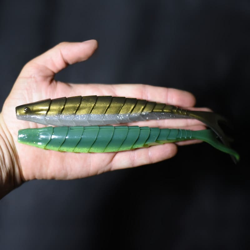 Оснащать разумнее всего джиг-головкой с крючком 6/0-8/0 с применением стингеров. Для судака размер джиг-головки следует подбирать поменьше, т.к. он, как правило бьёт в голову, для щуки – побольше.