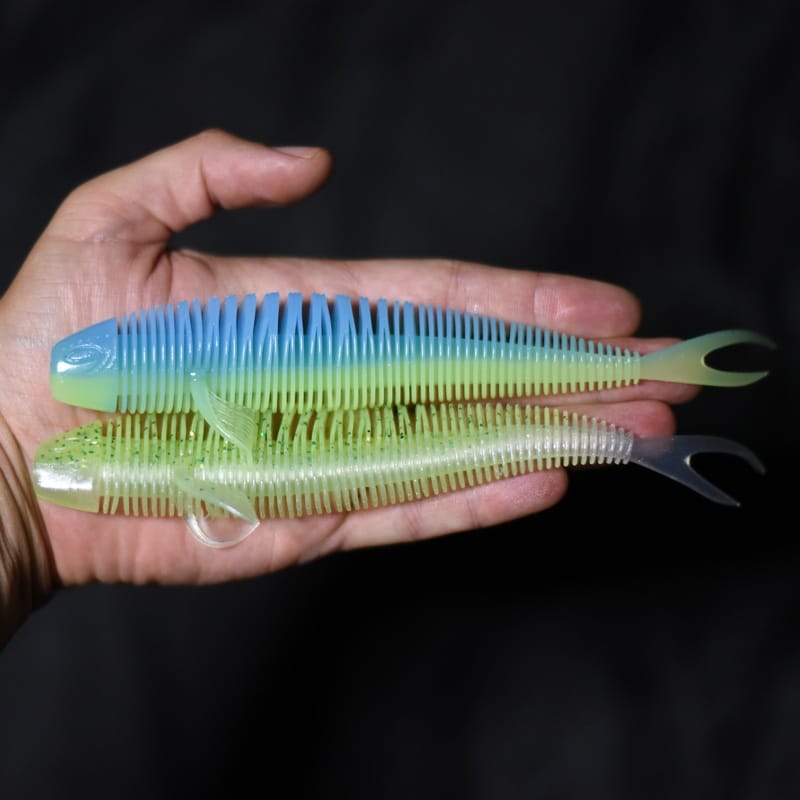 Подвижный слаг сложной “пластинчатой” конструкции с монолитной передней частью. Надежно держится как на джиг-головке, так и на фиксаторе-штопоре различной конструкции – при оснащении стингерами.