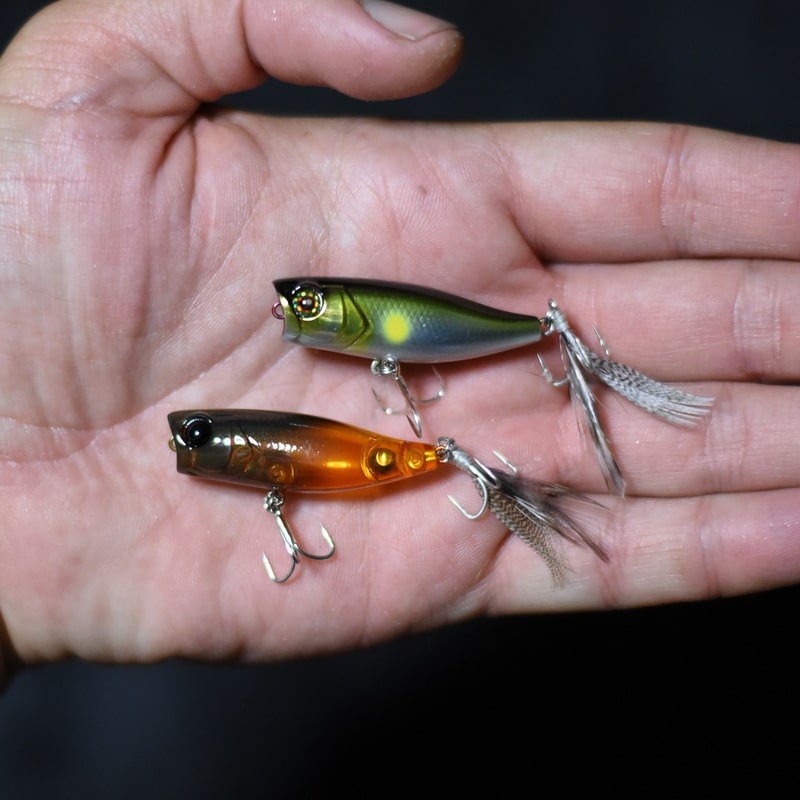 Небольшая ультралайтовая поверхностная приманка, движение которой при рывковой проводке сопровождается «бульканьем и чавканьем». Попер хорошо летит, держится на плаву, благодаря опушке тройника, во время рывка резко уходит влево и вправо, чем привлекает окуня, голавля, щуку и других хищников.