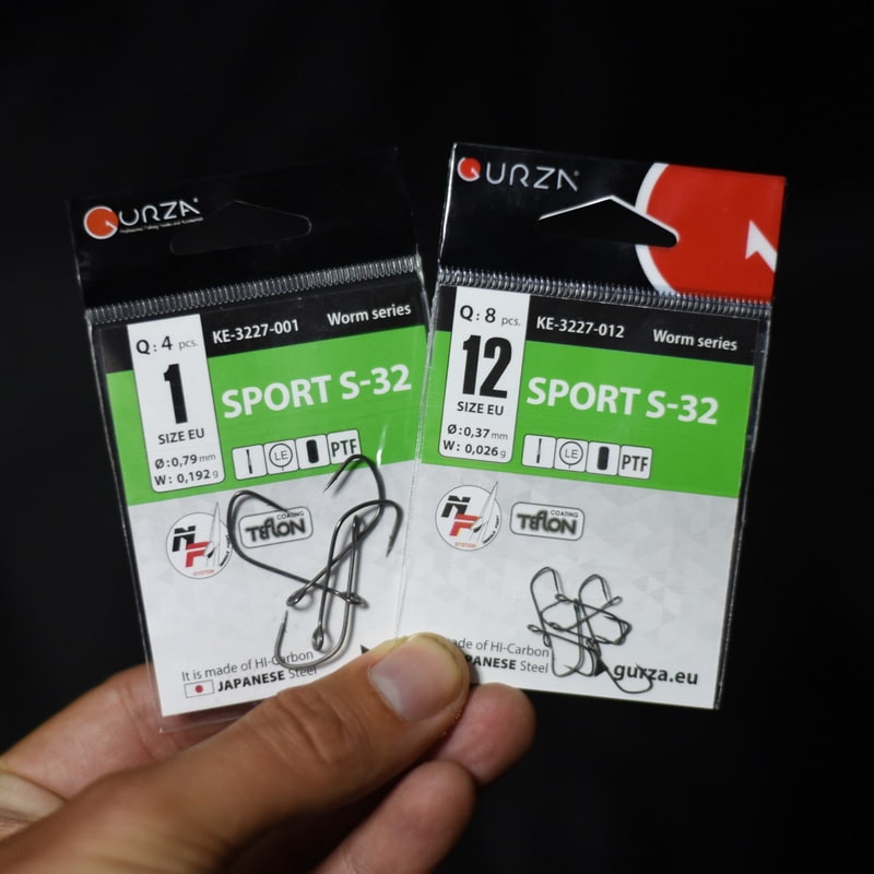 Модельный ряд классических одинарных крючков с увеличенным диаметром ушка, которые используются для ловли на силиконовые приманки небольших размеров. Главная особенность изделий – тефлоновое покрытие, которое защищает металл от коррозии и обеспечивает улучшенное скольжение в тканях губы рыбы при проникновении в нее. Крючок Gurza Sport S-32 даже в своем названии содержит предполагаемую область применения, а именно соревнования по ловле рыбы спиннингом, и также он весьма удачно может использоваться и в любительской рыбалке.
