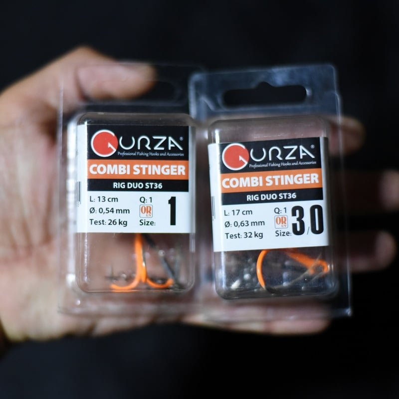Готовая оснастка класса “стингер” для оснащения крупных силиконовых приманок для ловли щуки и судака. Спираль у Combi Stinger вкручивается в голову, в остальном оснастка может крепиться к приманке коротким поводком снизу, а вторым (более длинным) поводком – сверху. Однако многие рыболовы удлинённый поводок крепят также снизу. Всего клипс на всей оснастке 5 штук, и каждая крепится в соответствующую и удобную часть тела приманки. Клипсы удерживают как тройники, так и сам поводок. Поводок изготовлен из плетёного материала 7х7. Цвет тройников – Orange (OR UV), который светится при ультрафиолете.