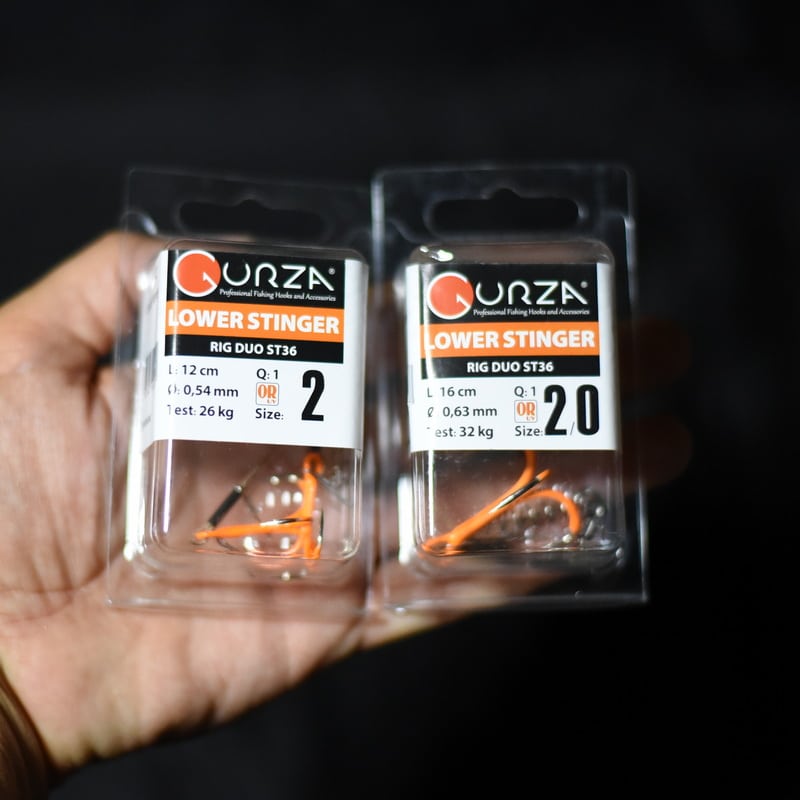 Готовая оснастка класса “стингер” для оснащения крупных силиконовых приманок для ловли щуки и судака. Спираль у Lower Stinger вкручивается в голову, в остальном оснастка крепится к приманке исключительно снизу – т.е. первая клипса вставляется в районе головы, вторая – в брюшко или середину приманки, третья – в районе хвоста или анального плавника. Клипсы удерживают как тройники, так и сам поводок. Поводок изготовлен из плетёного материала 7х7. Цвет тройников – Orange (OR UV), который светится при ультрафиолете.