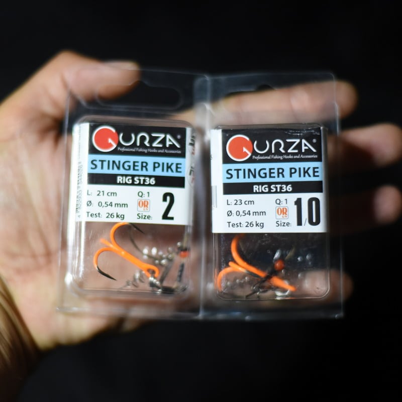 Готовая оснастка класса “стингер” для оснащения крупных силиконовых приманок для ловли, в первую очередь, щуки. Почему? Да потому что выше вкручиваемой спирали у оснастки имеется удлинённый поводок, который защищает от острых щучьих зубов. Спираль у Stinger Pike вкручивается в голову, в остальном оснастка крепится к приманке исключительно снизу при помощи единственной клипсы, которая вставляется районе головы или брюшка приманки (в зависимости от длины и формы приманки). Клипса удерживает как тройник, так и сам поводок. Поводок изготовлен из плетёного материала 7х7. Цвет тройника – Orange (OR UV), который светится при ультрафиолете.