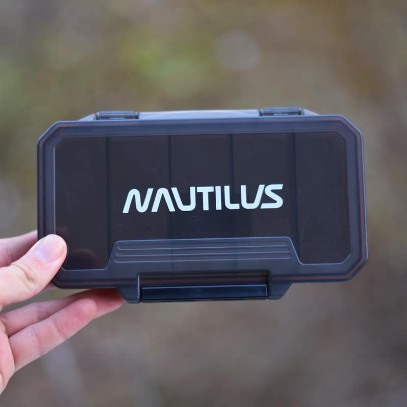 Небольшая односторонняя коробка от компании Nautilus, которая отлично подойдёт для хранения и переноски миниатюрных приманок. Имеется прорезиненная герметичная крышка от попадания влаги внутрь коробки. Размеры коробки 18,5 х 11 х 3,7 см.