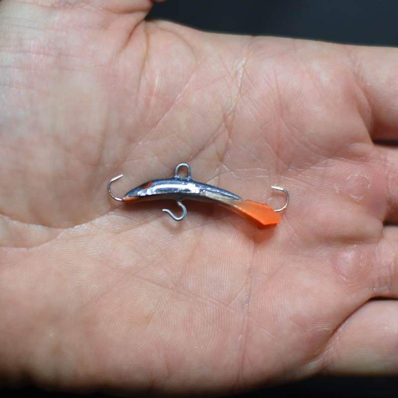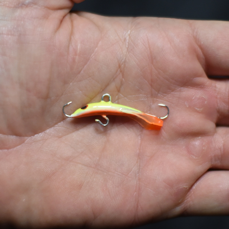 Балансир в форме банана, созданный для самых капризных окуней. Идёт с петелькой для тройника. Ручная работа. Предназначен для ловли судака, окуня и щуки.