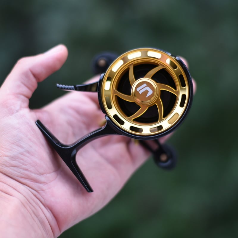 Выполнена запоминающемся дизайне, комплектуются точеной алюминиевой шпулей, предусмотрено направляющее “окошко” для лески, которое предотвращает сход со шпули при подмотке, и, самое главное, магнитная система подтормаживания шпули.