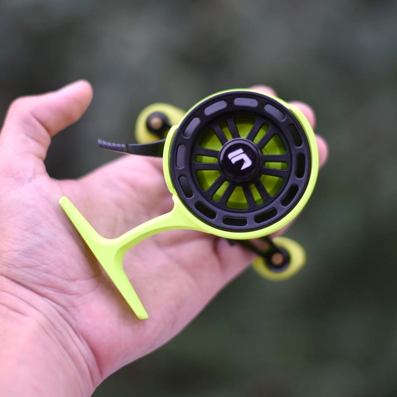 Обновленная версия зимней мультипликаторной катушки Jig It Team Dubna Vib Special G2. Во 2-ой генерации катушки спроектировано «направляющее окошко» для лески, предотвращающее сход лески со шпули во время подмотки. Классическая леворукая версия в цвете лайм.