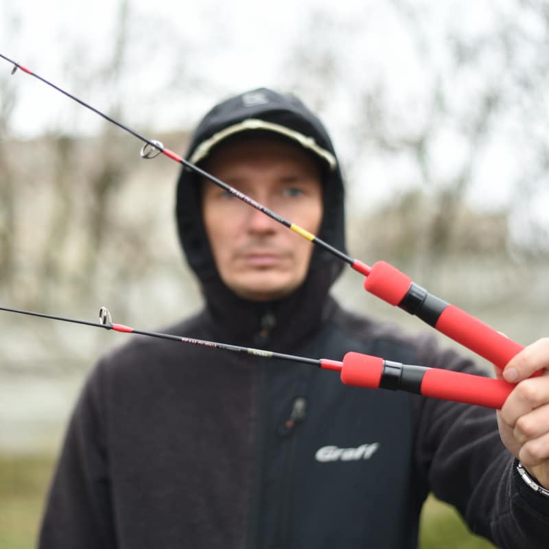 Эти удочки представлены в одной длине – 57 сантиметров. Но их главной особенностью является то, что их вершинки сменные. То есть купив одну или несколько отдельных вершинок в разных тестах, можно их менять непосредственно на самой рыбалке в зависимости от условий ловли. Сама удилка нацелена на ловлю таким видом приманок как вибы. Транспортная длина в сложенном состоянии – 46 сантиметров.